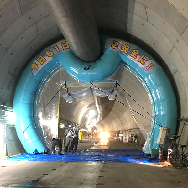 • トンネルのシールド工事の養生対策アーチ